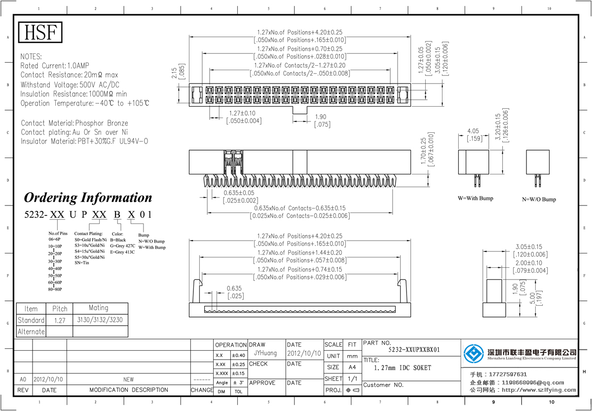 產(chǎn)品分類:IDC插座連接器 產(chǎn)品型號: IDC連接器 IDC 連接器 聯(lián)豐盈 技術(shù)參數(shù):額定電流:3.0amp電流電阻:20m最大絕緣電阻:1000mmin耐壓:1000V AC /分鐘工作溫度:40﹣℃+ 105℃接觸材料:黃