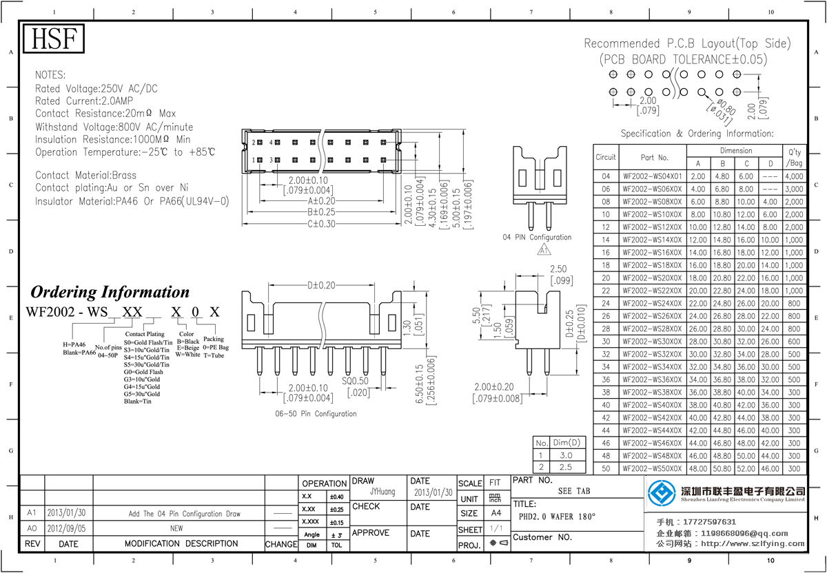 產(chǎn)品分類:Wafer連接器 產(chǎn)品型號(hào):2.0MM 間距 housing 供應(yīng)商 技術(shù)參數(shù):電流1.0amp:接觸電阻:20m最大絕緣電阻:1000mmin耐壓:800V的交流電源/分鐘operyion溫度:25℃+ 85℃接觸材料:黃銅觸點(diǎn)
