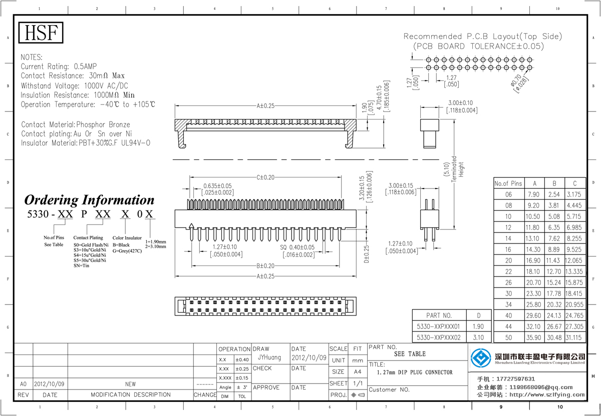產(chǎn)品分類: DIP插頭連接器 產(chǎn)品型號(hào):1.27MM 磷銅 DIP PLUG 連接器 聯(lián)豐盈 技術(shù)參數(shù):額定電流:3.0amp電流電阻:30m最大絕緣電阻:1000mmin耐壓:500V的交流/直流操作溫度:40﹣℃+ 105℃接觸