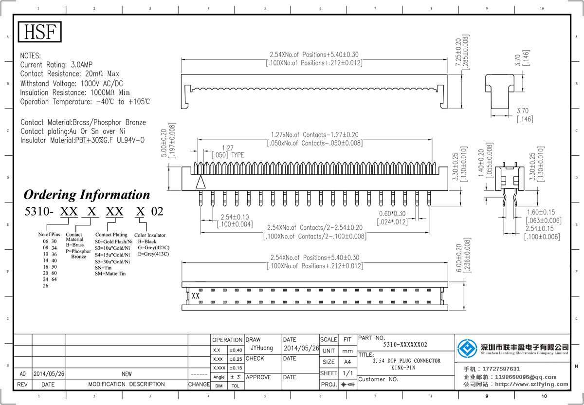 產(chǎn)品分類:DIP插頭連接器 產(chǎn)品型號(hào):抗氧化 2.54MM 26P DIP PLUG 生產(chǎn)聯(lián)豐盈 技術(shù)參數(shù):額定電流:3.0amp電流電阻:20m最大絕緣電阻:1000mmin耐壓:1000V AC /分鐘工作溫度:40﹣℃+ 105℃接觸材