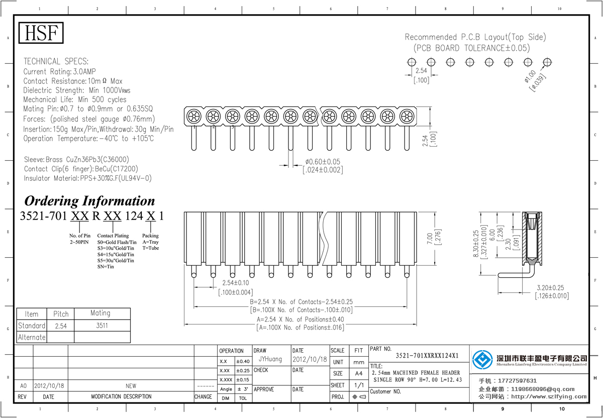 產(chǎn)品分類:圓孔排針排母連接器 產(chǎn)品型號:2.54MM 單排 H=7.0 90度彎插 圓孔排母 聯(lián)豐盈廠家 技術(shù)參數(shù):額定電流:3.oamp接觸電阻:1om最大介電強度:MIN/1000vrms機械壽命:最少500次交配引腳