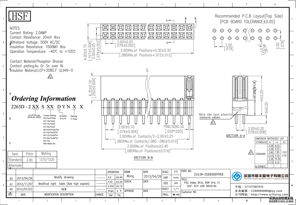 產(chǎn)品分類:排母連接器 產(chǎn)品規(guī)格:聯(lián)豐盈 2.0MM 雙排加塑膠 180SMT 排母 生產(chǎn) 產(chǎn)品介紹:額定電流:2.0amp電流電阻:20m最大絕緣電阻:1000m民承受電壓:AC 500V /分鐘工作溫度:55﹣℃+ 125℃