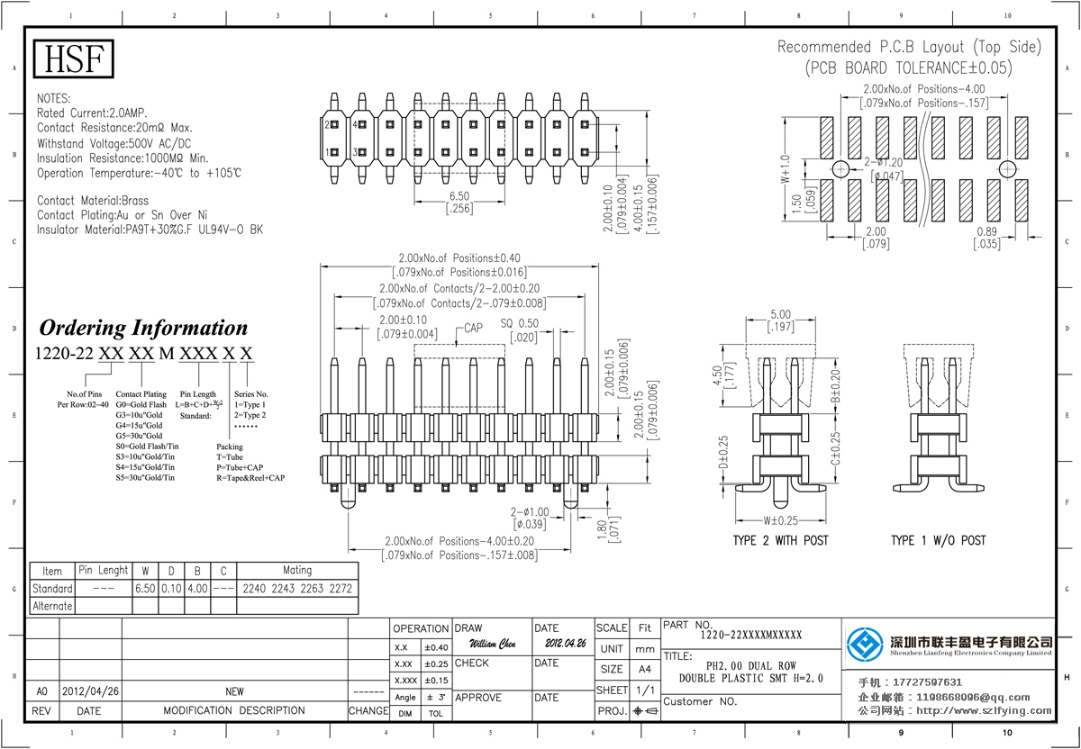 產(chǎn)品分類(lèi):排針連接器 產(chǎn)品規(guī)格:2.0MM 雙層雙排 加夾持蓋 排針 聯(lián)豐盈 產(chǎn)品介紹:額定電流:2.0amp電流電阻:20m最大絕緣電阻:1000m民承受電壓:AC 500V /分鐘工作溫度:40﹣℃+ 105℃接