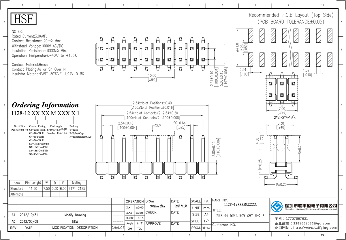 產(chǎn)品分類:排針連接器 產(chǎn)品規(guī)格:2.5MM 單層雙排 180SMT排針 聯(lián)豐盈 產(chǎn)品介紹:額定電流:2.0amp電流電阻:20m最大絕緣電阻:1000m民承受電壓:AC 500V /分鐘工作溫度:40﹣℃+ 105℃接觸材料