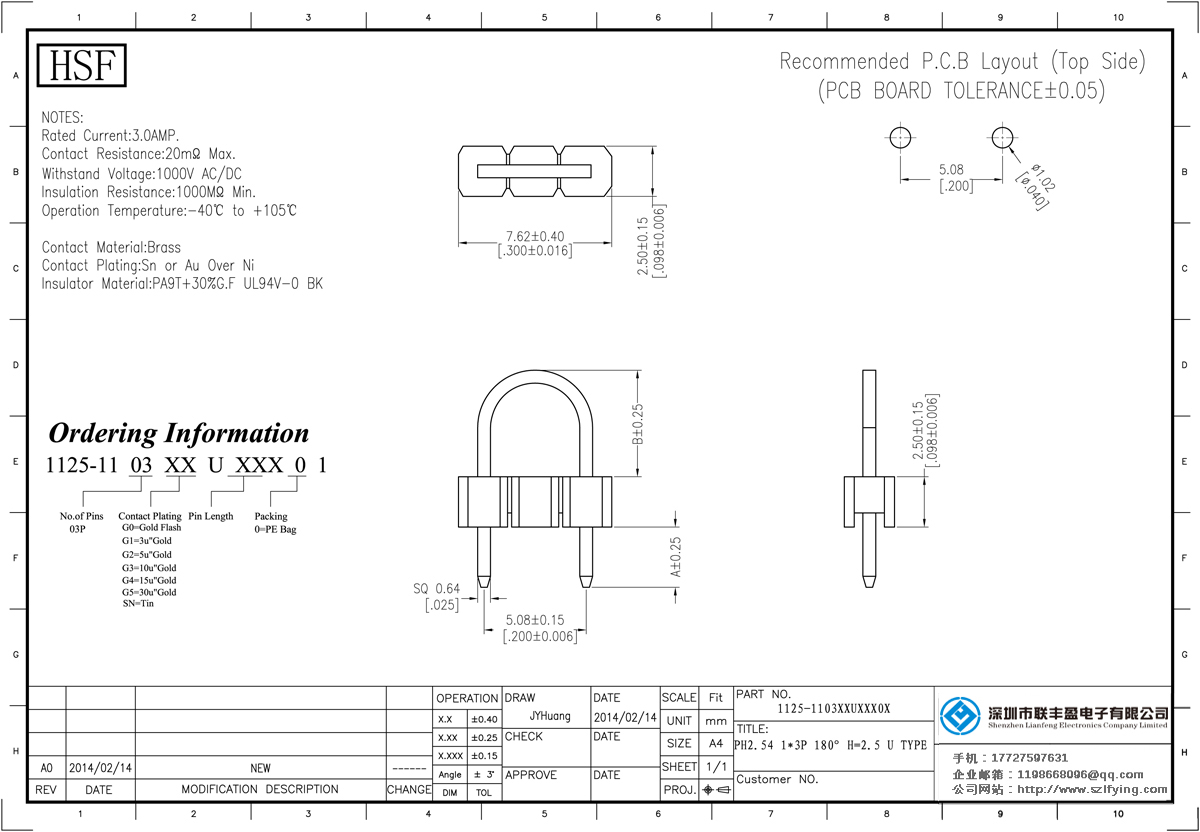 產(chǎn)品分類:排針連接器 產(chǎn)品規(guī)格:2.54MM 單層單排 U型DIP 排針 聯(lián)豐盈 產(chǎn)品介紹:額定電流:3.0amp電流電阻:20m最大絕緣電阻:1000m民承受電壓:AC 500V /分鐘工作溫度:40﹣℃+ 105℃接觸材