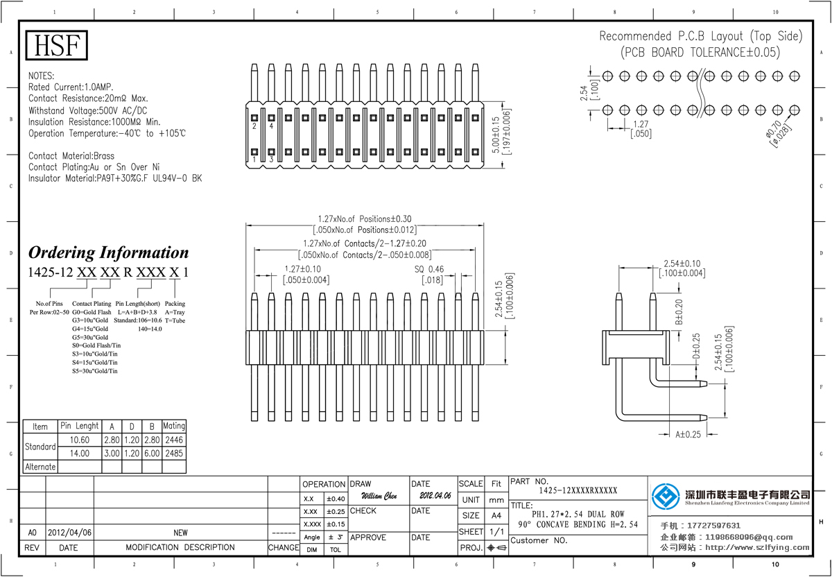 產(chǎn)品分類:排針連接器 產(chǎn)品規(guī)格:1.27*2.54mm 單層雙排 90 彎插 插板型 排針 連接器 產(chǎn)品介紹:1425 - 12xxxxrxxxxx電流:電流:20m評(píng)級(jí)1.0AMP電阻絕緣電阻值:最大耐受電壓500V 1000m分鐘:AC /分