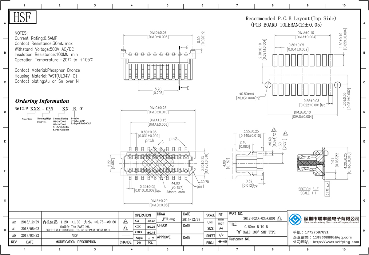 產(chǎn)品分類:Board To Board 連接器 產(chǎn)品型號(hào):0.8MM 公座 單槽結(jié)構(gòu) Board To Board聯(lián)豐盈 技術(shù)參數(shù):額定電流:0.5amp電流電阻:20m最大絕緣電阻:100m承受電壓:AC 500V /分鐘工作溫度:20﹣℃+ 1