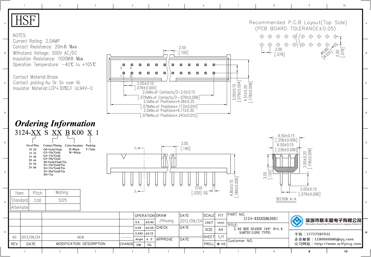 產(chǎn)品分類:簡易牛角連接器 產(chǎn)品型號:聯(lián)豐盈 2.0MM Samtec型 180DIP 簡牛 供應(yīng) 技術(shù)參數(shù):額定電流:2.0amp電流電阻:20m最大承受電壓:500V的交流/直流絕緣電阻:1000分鐘操作溫度:40﹣℃