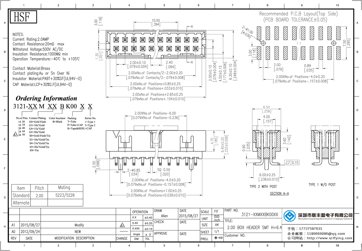 產(chǎn)品分類(lèi):簡(jiǎn)易牛角連接器 產(chǎn)品型號(hào):耐高壓 2.0MM TYCO型 180SMT 簡(jiǎn)牛 廠家 技術(shù)參數(shù):額定電流:2.0amp電流電阻:20m最大承受電壓:500V的交流/直流絕緣電阻:1000分鐘操作溫度:40﹣℃